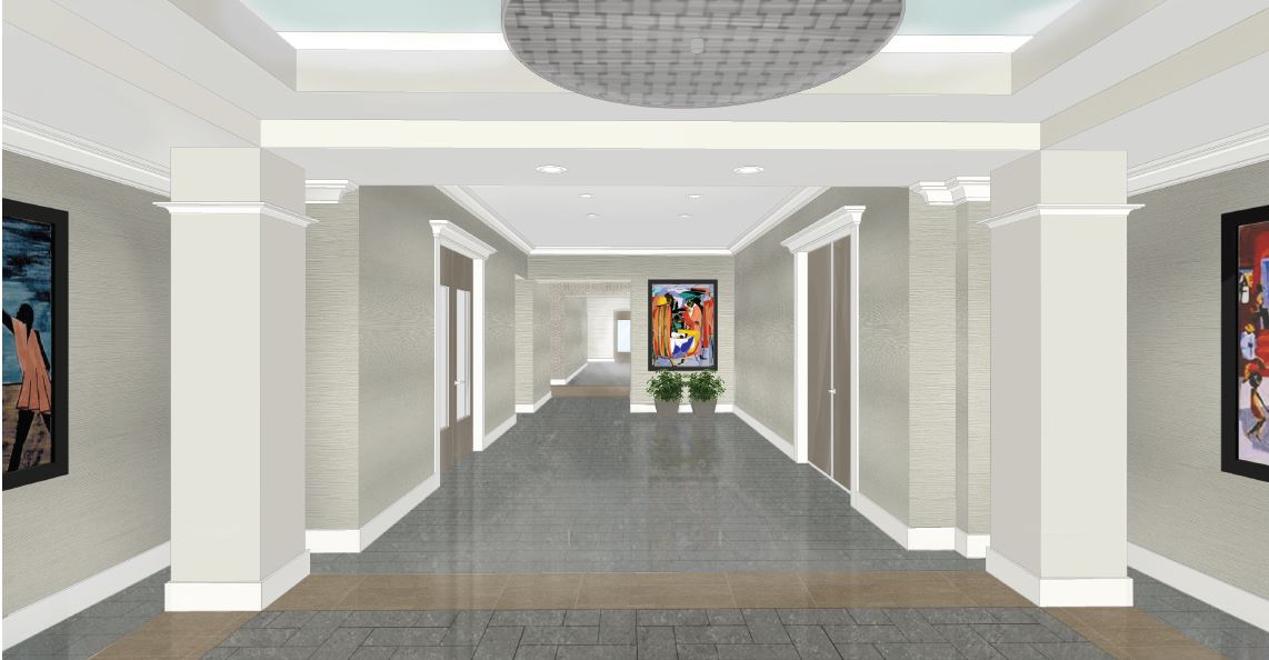 Plans for lobby and restroom renovations at Promenade Park are in the works. Interior designers from veenendaalcave HEALTHCARE have been tapped to overhaul Promenade’s lobby and restrooms. They have utilized existing architectural features wherever possible to accentuate the building’s look and feel. Framed prints from renowned African American artist Jacob Lawrence will finalize the lobby’s modern new look.